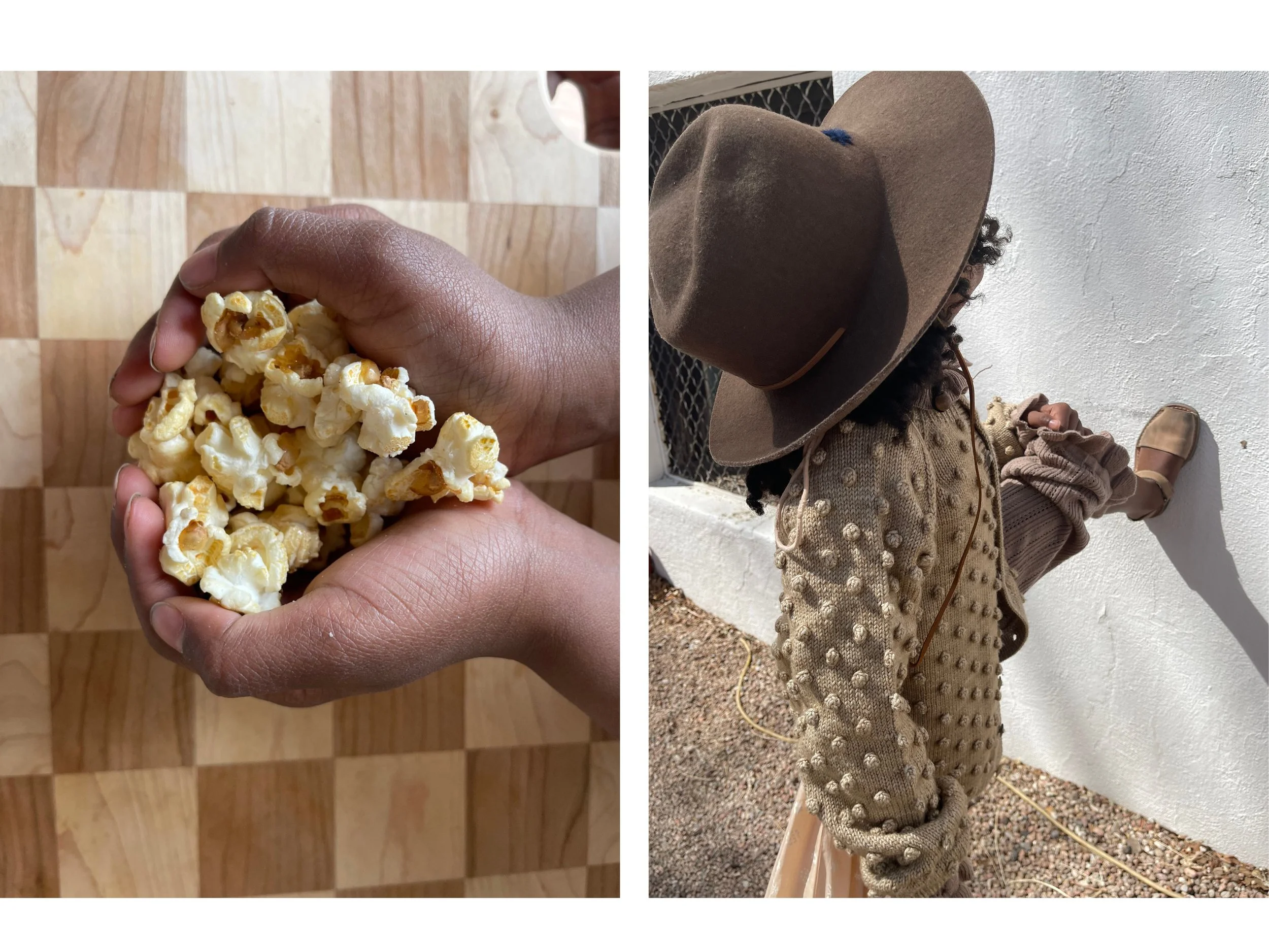 “Winter escaping days filled with fun treats and games… this what we usually enjoy during the mid summer. Smoothies, snacks and single half eaten fruit everywhere with sweet & salty popcorn sounds like summer to us easily. The kids have old Pokémon cards collected from their dads childhood they’ve adopted for days like this. If we are lucky the Penny Arcade is open and they are hoping on everything that makes loud noises you can almost touch their joy through the photos. Then sealing it all with a new baby brother to share stories through music and play to end the day.” — Ahjanae